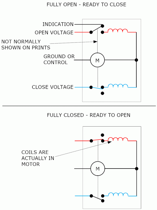 Most are fairly simple in their operation. Two coils, one to open and one to close. An internal switch flips between contacts whenever the motor has reached full travel.