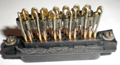 The picture above right shows the pin arrangement of the bock. Pin numbers are indentified at the end of each row. The picture below shows a block with the cover removed.