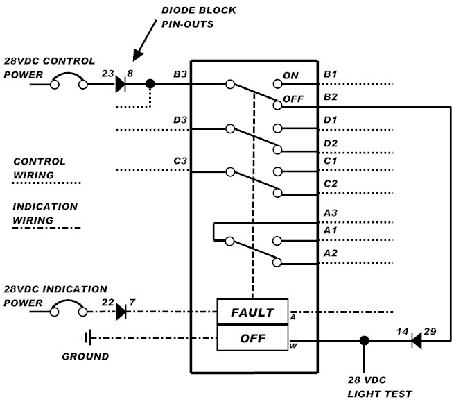 Airbus aircraft use diode blocks for indication and control on many ATA systems. Relays, switches, and indication lights will usually have a diode block incorporated with the circuitry. The blocks are easily swapped for T/S purposes. Individual diodes can be checked from the pins with the block removed.
