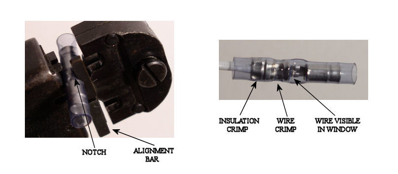 - Crimping tools will have an alignment bar for placement. Splices will have a notch that fits under this bar. Terminal lugs also go under this bar. If the terminal is positioned correctly, the bar acts as a "stop" for the wire as it is inserted.