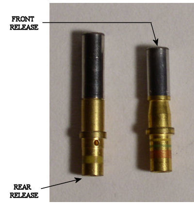Plastic or metal insertion/extraction tools are required to work on rear release pins. The tools are made by Amp® and Deutsch®. Both manufacture's plugs are used extensively throughout aircraft avionics/electrical systems.